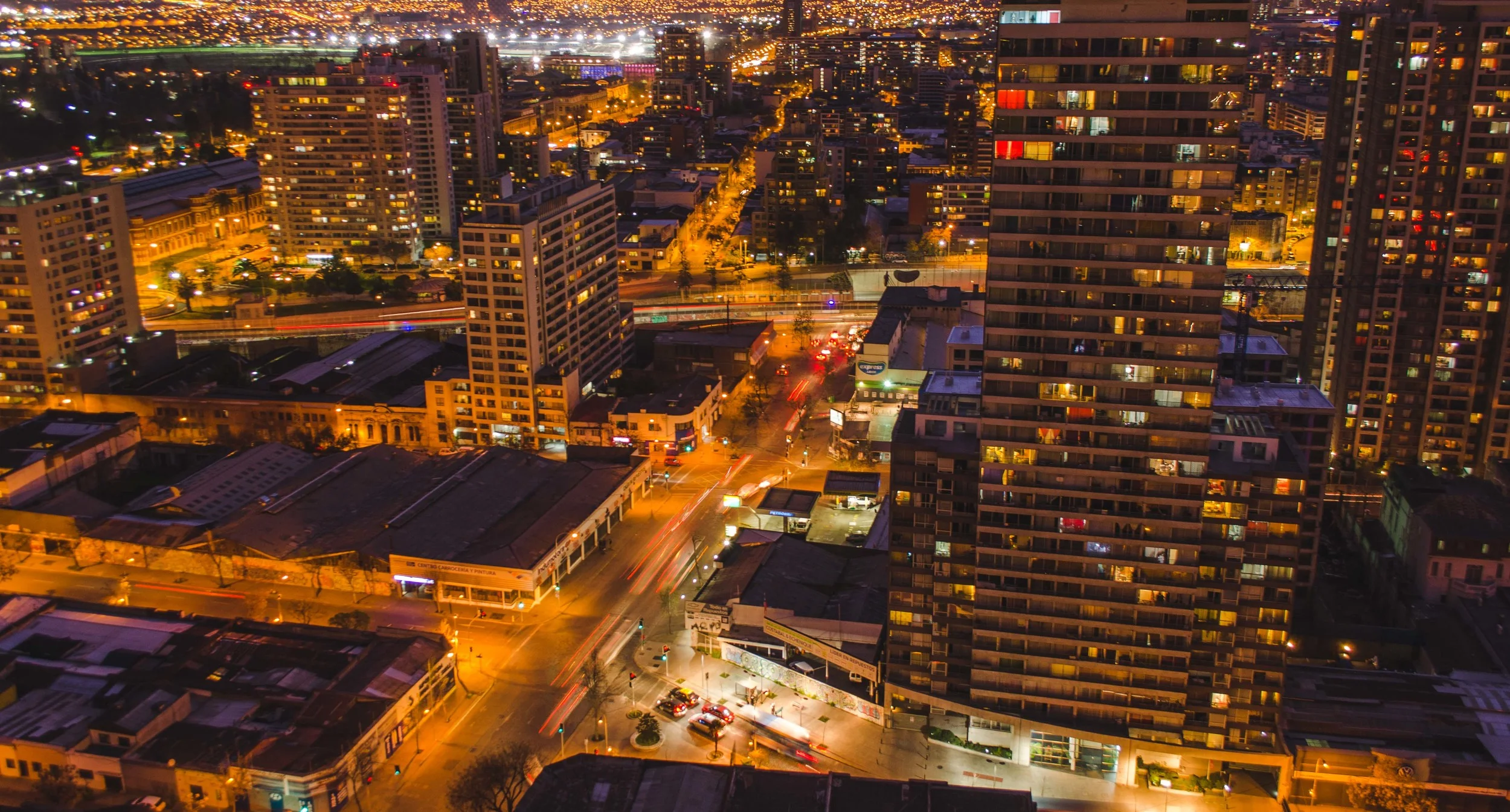 long exposure looking west towards Metro Toesca